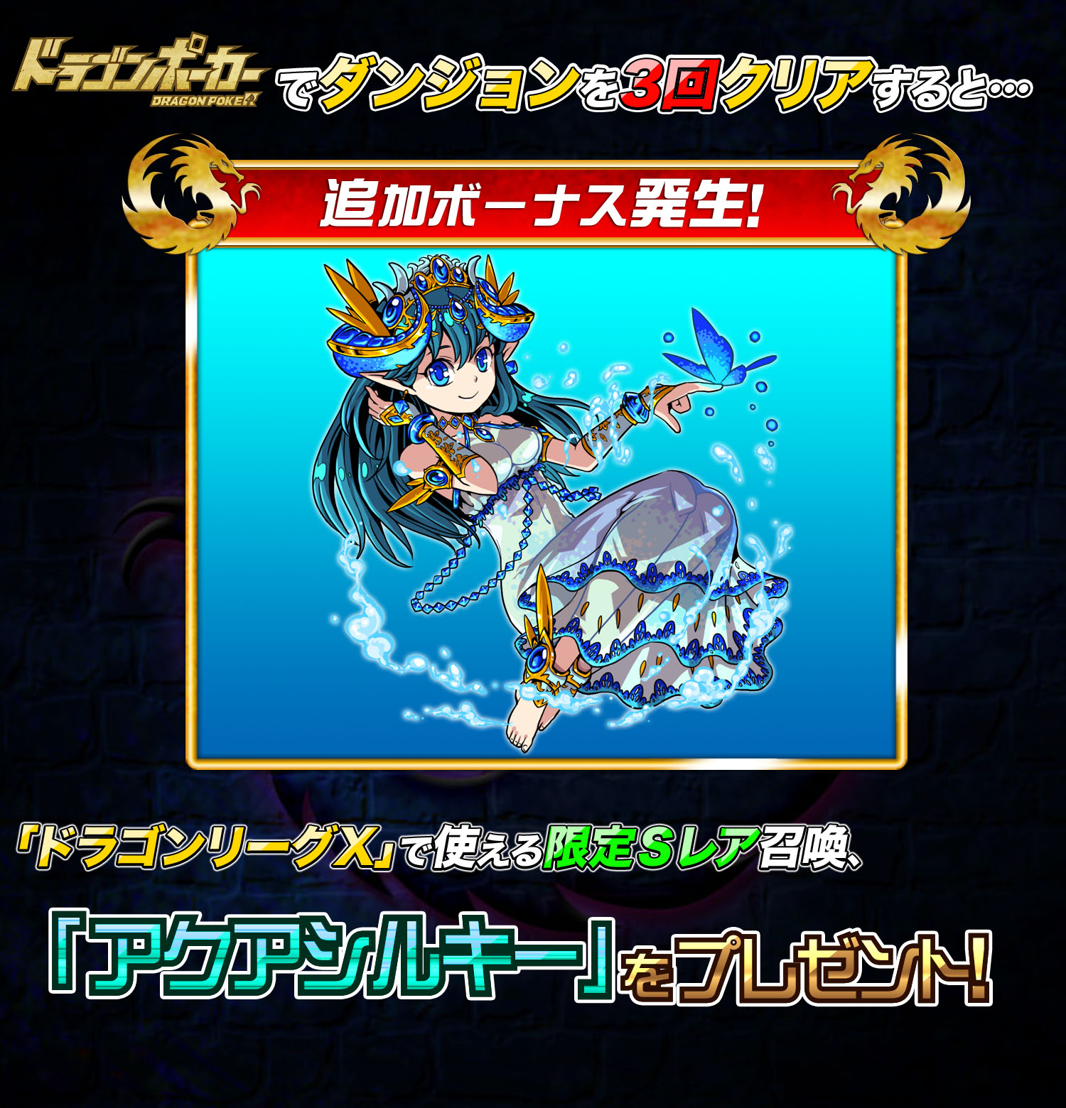 ⇒「ドラゴンリーグX」で使える限定Sレア召喚『アクアシルキー』をプレゼント!