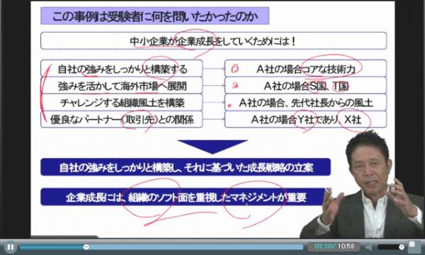 2012年度(平成24年度)中小企業診断士 2次本試験の4事例を、1事例あたり45分(4チャプター)の映像講義をご提供しています。