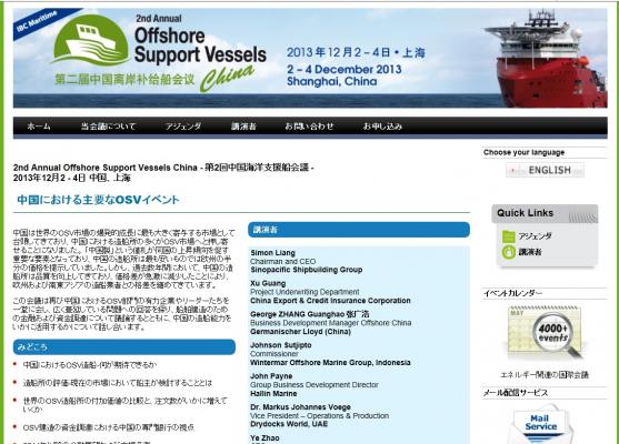 会議:「2nd Annual Offshore Support Vessels China - 第2回中国海洋支援船会議」