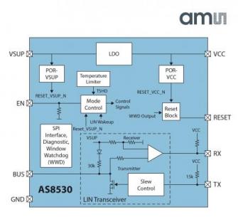 ams(日本法人:amsジャパン株式会社、東京都品川区、カントリーマネージャー 岩本桂一)は本日、機能安全標準規格ISO26262に準拠するLINスレーブアプリケーションをサポートする世界初の小型電源/トランシーバIC、AS8530を発表しました。