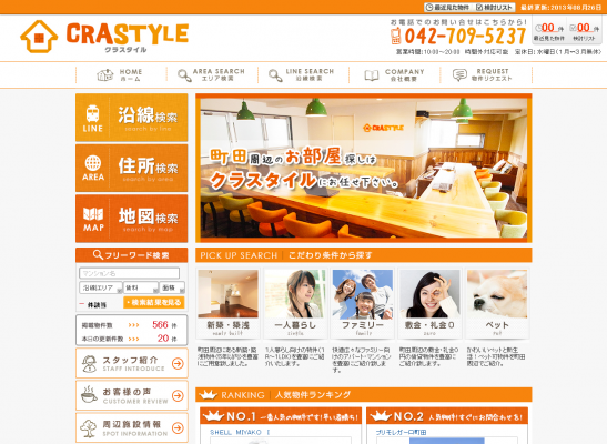 この度『クラスタイル株式会社』が運営するホームページは、"町田周辺のお部屋探しはクラスタイルにお任せ下さい"をコンセプトに、町田周辺の賃貸物件情報を扱うホームページとなっております。