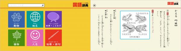 ◆調べたいことばを自分で入力し検索する方法のほかに、「動物」「植物」「地名」「人名」「故事・ことわざ」「短歌・俳句」といったジャンルから調べていくこともできます。