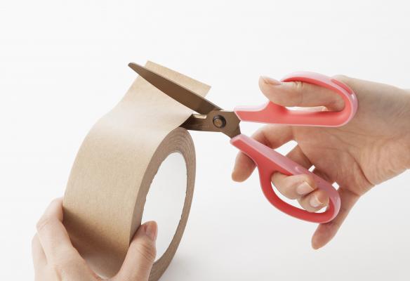 梱包用のガムテープなど粘着物を切り続けると起こる刃のベタつき。「フィットカットカーブ プレミアムチタン」は、この現象がはさみの刃同士の接触面が多いため生じる点に着目しました。