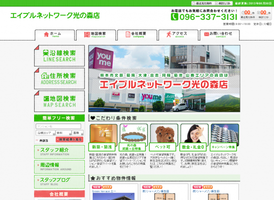 『熊本賃貸ネット株式会社』はweb集客の面でさらなるパフォーマンスの向上をはかるために、今回自社ホームページ構築支援ASP「いえらぶCLOUD」サービスを導入し、上記ホームページを公開いたしました。
