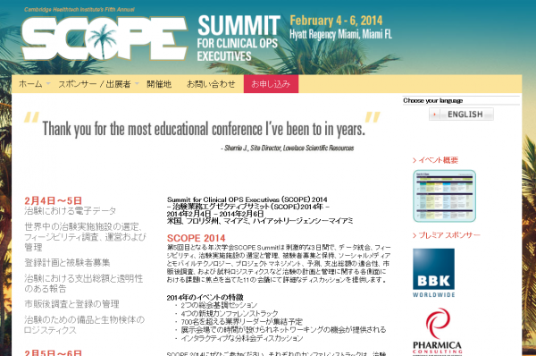 学会:「Summit for Clinical OPS Executives (SCOPE) 2014-治験業務エグゼクティブサミット2014年」