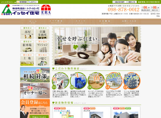 この度『有限会社イッセイ住宅』が運営するホームページは、"幸せを呼ぶ住まい。"をコンセプトに、沖縄市浦添周辺の賃貸・売買物件情報を扱うホームページとなっております。