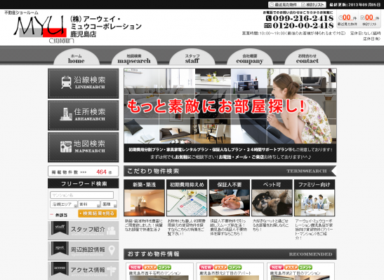 この度『株式会社アーウェイ・ミュウコーポレーション鹿児島店』が運営するホームページは、"もっと素敵にお部屋探し"をコンセプトに、鹿児島周辺の賃貸物件情報を扱うホームページとなっております。
