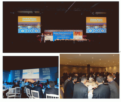 展示ブースでは最新の調査レポート「Water for Power(9月末発行予定)」をはじめ、3年に一度発行される主要73か国の最新トレンドを各セクター別にまとめたベストセラーレポート「Global Water Market 2014」、世界で1,300の発行部数を誇る水ビジネスのパイオニア誌「Global Water Intelligence」などの展示/詳細レポーティング他、毎年ヨーロッパで開催する同社が持つ世界の水メジャーのキーパーソンを招待し500人のビジネスリーダーたちがビジネスネットワーキング、情報収集のために参加する年に一度のGWI主催祭典、Global Water Summitの様子をディスプレーで紹介しております。