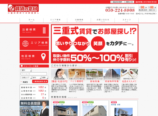 この度『株式会社 賃貸の窓口』が運営するホームページは、"三重式賃貸でお部屋探し!?思いやり つながり 笑顔をカタチに・・・"をコンセプトに、三重・津周辺の賃貸物件情報を扱うホームページとなっております。
