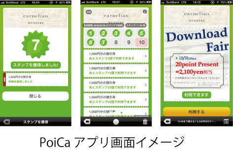 さらにアリシアでは初回登録キャンペーンとして、9月12日から10月31日まで、「PoiCa」に「carnelian」スタンプカードを登録して頂くともれなく2,100円分の割引券がもらえるキャンペーンを実施致します。