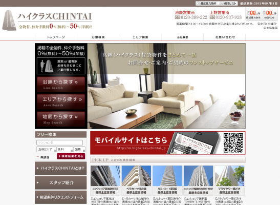 「仲介手数料0%の高級物件特集」(http://www.highclass-chintai.jp/zero/)