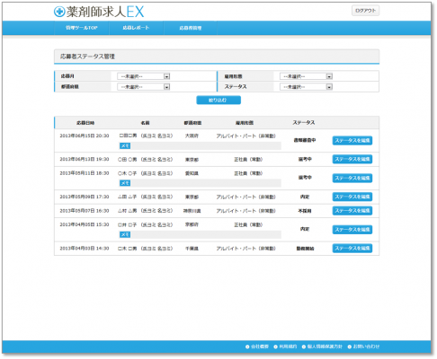 看護師求人EXでは各社様用に管理画面を用意しており、応募者情報を確認いただけるほか、