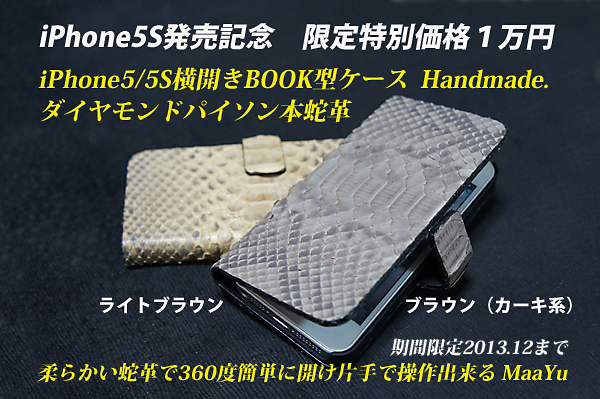 横開きBOOK型iPhone5/5Sケース15000円を2013年12月まで1万円販売致します。