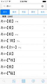 ●豊富な検索オプションを用意(前方一致検索・後方一致検索・完全一致検索・部分一致検索・全文検索)。それぞれの検索方法で、文字を入力すると候補見出し語が表示されるインクリメンタルサーチに対応。(部分一致、全文検索を除く)用語をうろ覚えでも検索が容易です。