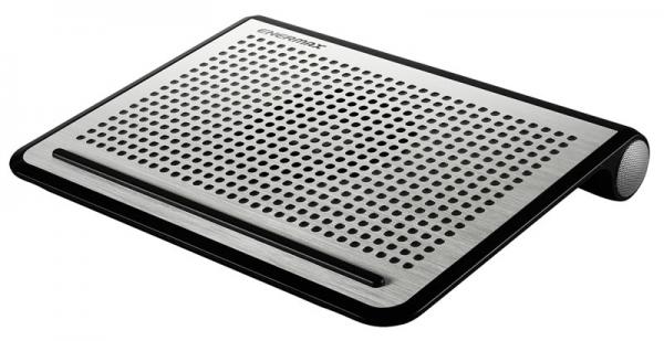 CP008は、16インチサイズに対応したスピーカー付きノートパソコンクーラーです。DreamBassサウンドチップ、HiFiオーディオアンプ、40mmフルレンジサテライトスピーカーを搭載、音楽や動画鑑賞、ゲームを迫力のあるサウンドで楽しむ事ができます。マニュアルコントロールに対応した120mmファンによって、より効果的にノートパソコンを冷却します。トップのアルミニウムプレートはヘアライン加工を施すことで、高級感溢れる外観を醸し出しています。