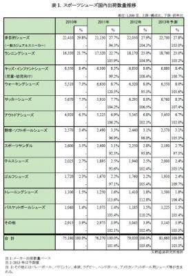 2.調査対象:スポーツシューズメーカー、輸入商社、卸売業、小売業など 3.調査方法:当社専門研究員による直接面談、ならびに郵送アンケートによる調査を併用