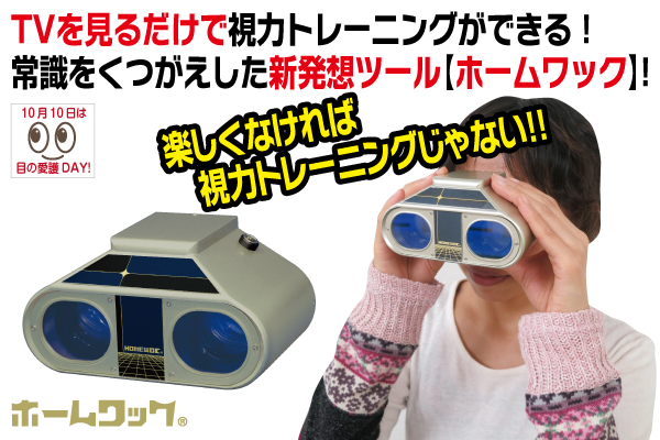 【ホームワック】は、双眼鏡のような形で、一日たった20分間、いつも見ている好きなテレビ番組をそれを通して見るだけで、