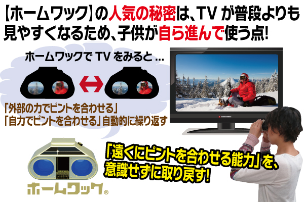 また、近視の始まった子どもにとっては、【ホームワック】を通してTVを見た方が、