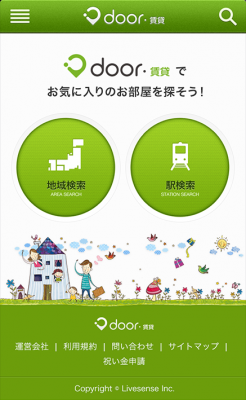株式会社リブセンス(本社:東京都品川区、代表取締役社長:村上太一、東証一部:6054)は、本日、賃貸情報サイト「door賃貸」(URL:http://chintai.door.ac/)のスマートフォンサイトを全面リニューアルいたしました。
