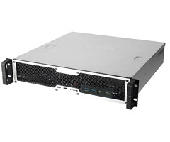 フロント全面にハニカムパネルを使用して、優れた通気性を実現した奥行き46cmのコンパクトな筺体に、LP拡張スロット4本を装備したEIA規格の2Uサーバーです。システムの温度管理と大幅な消費電力の低減を可能にする、Intelノード・マネージャー機能をサポートしています。
