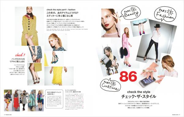 大特集「CHECK THE STYLE:あの人のセンスがいい理由をチェック!」なぜあの人はセンスがいいの? お洒落スナップ常連海外エディターのスタイリング術、いつもキレイなあの人たちの美容生活、クリエイターの本棚、音楽好きのiPod、スマホ達人アプリまで、気になる“今”の最新情報を総ざらい徹底チェック! !
