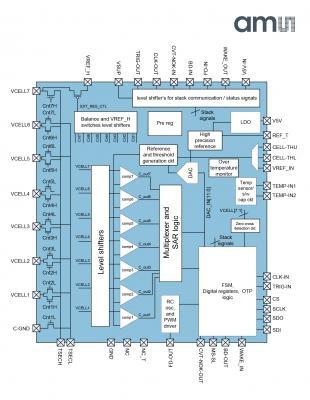 amsが開発した革新的なアーキテクチャでは、新しく高度に統合されたチップであるAS8506を使用してSafe Operating Area (SOA) (安全動作領域)のチェックやパッシブまたはアクティブセルバランスなどを含む、セルスタックモジュールに対する分散型セル監視およびセルバランスの実行を可能にします。これは、ハイブリッド車や完全電気自動車のエネルギー・ストレージシステム並びにEDLC (電気二重層キャパシタ)(別名Supercaps/Ultracaps)などにおけるリチウムベースのバッテリシステムへの適用に理想的です。