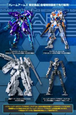 会場限定先行販売品としてFAシリーズ4点を販売予定です。他、プラキットシリーズ、フィギュアの新作商品の発表など、ぜひコトブキヤブースにお越し下さい。