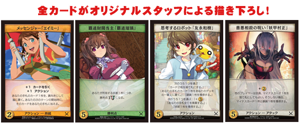 ニトロプラスの歴代ゲームキャラクターと、世界的ゲーム賞(ドイツ年間ゲーム大賞、ドイツゲーム賞、アラカルト・カードゲーム賞)で史上初となる三冠を達成した新感覚カードゲーム「ドミニオン」が融合!