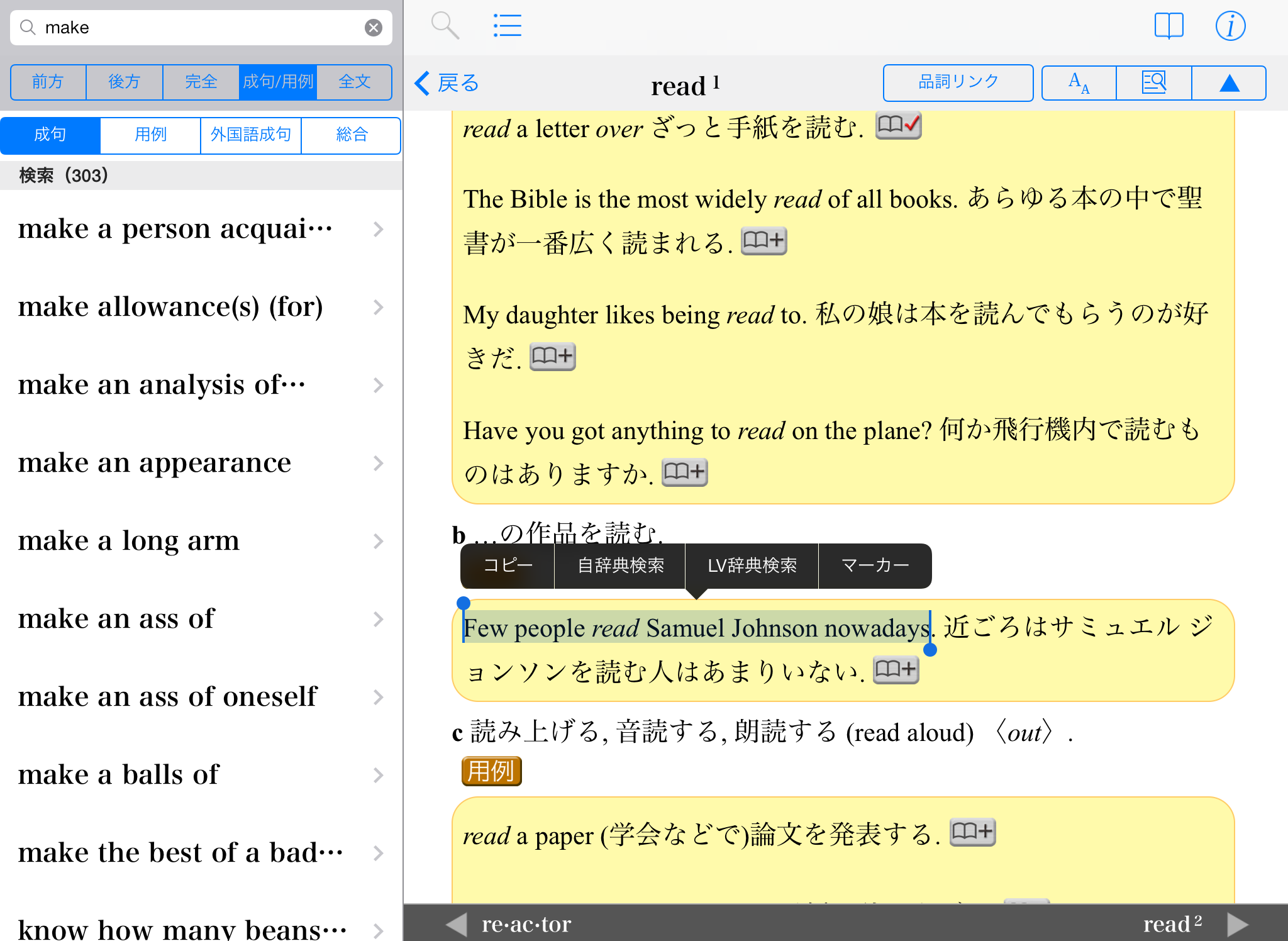 ●本文中の用語をなぞることで次々に辞書引きができるジャンプ機能。