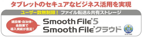 この度、弊社が開発・提供するファイル転送&共有ストレージ「Smooth File」と、タブレットをビジネスシーンで安全に活用する為の「Smooth File5 for iPad/Android」を展示します。
