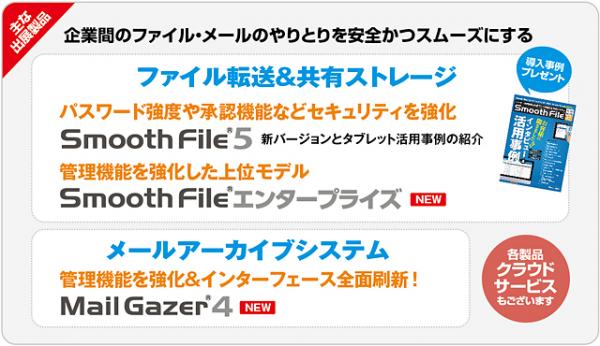 ◆法人向け大容量ファイル転送&共有ストレージ「Smooth File5」および「Smooth Fileクラウド」