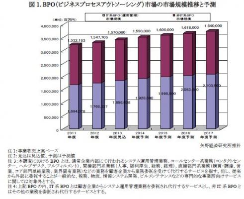 2.調査対象: SIer、コールセンター事業者、印刷会社、倉庫会社、コンサルティング会社などのBPO市場参入事業者、人事系、経理系、医療系、オフショア系などのBPO事業者、クラウドソーシング事業者