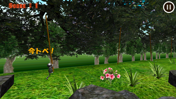 画面をタイミングよくタップして、ターザンのように縄を掴んでジャンプしていくゲームです。