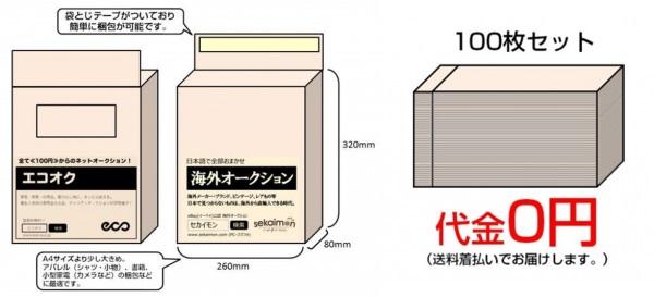 「セカイモン」は、株式会社ショップエアラインが運営する、世界最大のオークションサイト「eBay」の日本語公式サイトであり、「エコオク」は株式会社ウィンローダーが運営するモッタイナイをつなぐリユースのためのオークションサイトです。当社はこの両社と連携し、当社サービス「オークファン仕入れモール」のユーザに対し、宅配袋の無償提供を開始しました。