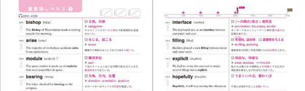 全3500語の収録単語は、一般的に専門学校などへの留学に必要な5.0レベル から名門大学・大学院に出願できる7.5 レベル以上まで、目標バンドスコア(*)にあわせて学習しやすい6段階のレベル別に構成されています。