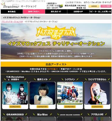 ブランド品宅配買取サービス&オークションサイト「ブランディア(http://brandear.jp/)」(以下、ブランディア)を運営する、株式会社デファクトスタンダード(本社:東京都大田区、代表取締役社長:尾嶋崇遠)は、過去最高の5万人が熱狂し大成功に終わった「イナズマロック フェス 2013」と協力し、チャリティーオークションを2013年10月23日より開催します。