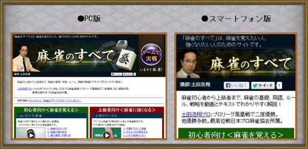 本サイトは、麻雀を覚えようという初心者向けの麻雀講座から、上級者が用いる麻雀戦術である、牌効率から考える「デジタル麻雀」と、流れや運を重視した「オカルト麻雀」の両戦術についても掲載しております。麻雀に関連するすべての事柄についてを動画で解説するWEBサイトです。また、土田プロが麻雀用語について解説する「麻雀用語辞典」も近日公開予定です。