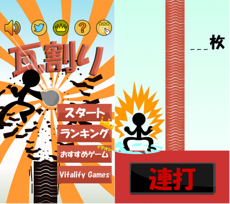 ボタン連打をして何枚瓦が割られるかを競うゲームです。