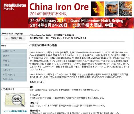 会議:「China Iron Ore 2014-中国鉄鉱石会議 2014」