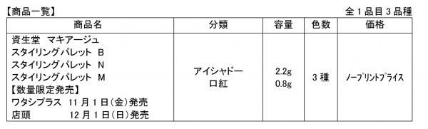 左から「スタイリングパレットN」「スタイリングパレットM」「スタイリングパレットB」