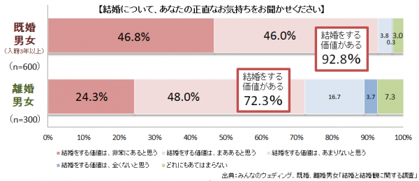 ■結婚「する価値がある」(既婚者92.8%、離婚者72.3%)