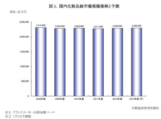 ◆ 2012年度の国内化粧品総市場規模は前年度比100.8%の2兆2,900億円