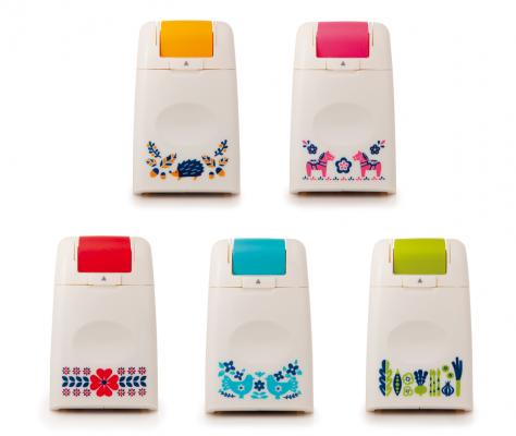 こうした潜在ニーズが高いことから、「ケシポン」をもっと多くの方にご利用いただけるよう、ご家庭のリビングやダイニングにも置きやすい“インテリアケシポン”をコンセプトに本製品を開発。郵便物や宅配便を処理することが多い家庭の中の身近な場所に置きたくなるような、シンプルでかわいらしい北欧調の雰囲気に仕上げました。本体カラーはアイボリー。デザインパターンは、「ハリネズミ(オレンジ)」、「ウマ(ピンク)」、「ハナ(レッド)」、「トリ(ライトブルー)」、「ヤサイ(グリーン)」の5パターンです。インクカラーはブラック。メーカー希望小売価格(税込)は735円です。