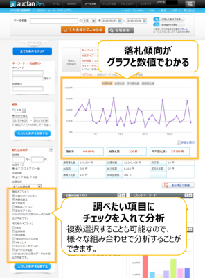 この度オークファンは、「ヤフオク!」の有料オプション機能による商品の落札傾向について、数値やグラフで確認・分析することが可能な国内初の新機能を、当社サービスである「オークファンプロ(http://pro.aucfan.com/)」に追加しました。