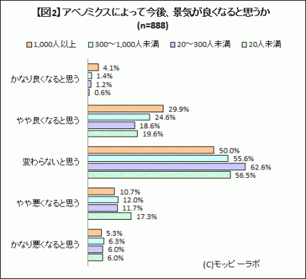 図表参照:【図2】企業規模別・アベノミクスで今後景気が良くなると思うか(n=888)