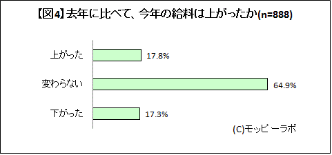 図表参照:【図4】去年に比べて、今年の給料は上がったか(n=888)