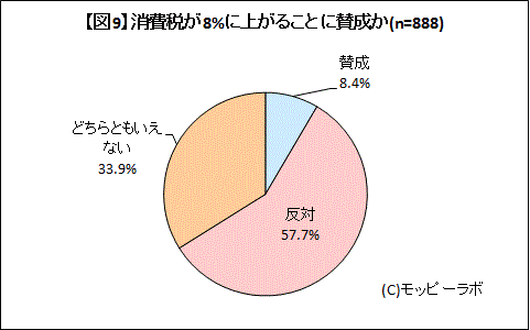 図表参照:【図9】消費税が8%に上がることに賛成か(n=888)