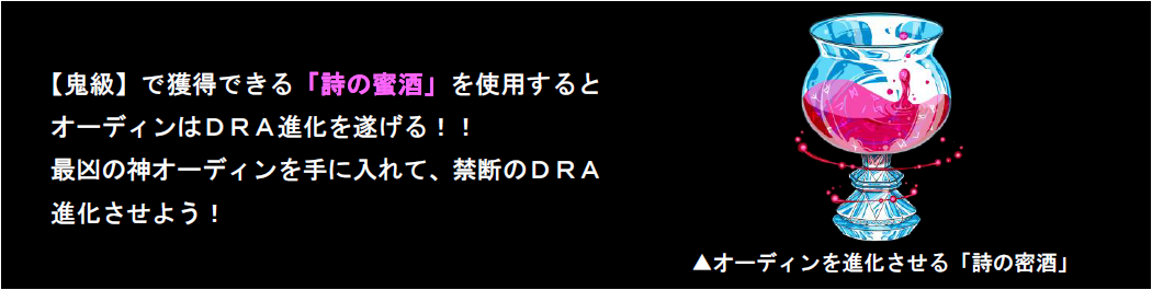 【鬼級】で獲得できる「詩の蜜酒」を使用するとオーディンはDRA進化を遂げる!! 最凶の神オーディンを手に入れて、