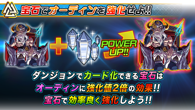 今回の『魔術の神オーディン』では進化素材の宝石とは別に、強化素材の宝石が手に入ります! 強化素材の宝石は、