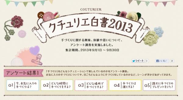 株式会社フェリシモは、カタログ『Couturier[クチュリエ]』を通じて、手づくり文化の醸成・発展を目指し、「製作キット」などを販売し、手軽に手づくりを親しむことができる機会を創造しています。この度、発表した「クチュリエ白書」では、愛好家の意識やその実態を調査することで、手づくり文化の理解の深まりや広がりを目的としています。